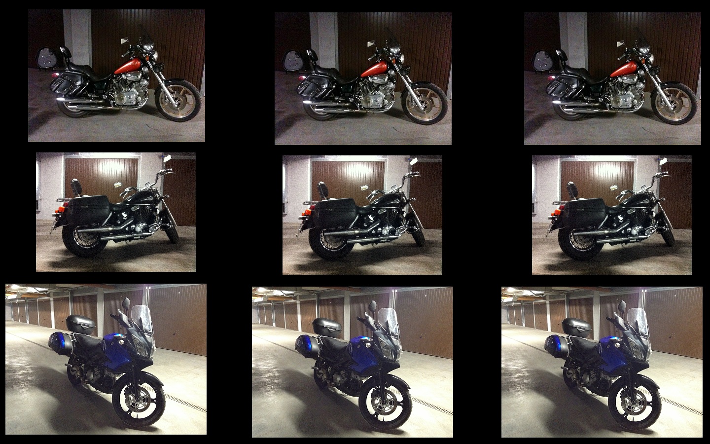 Zaraz po muzyce interesuję się motocyklami. W 2010 roku ukończyłem kurs motocyklowy, a w styczniu 2011 zakupiłem swój pierwszy motocykl '85 XV750 (Yamaha Virago). Sprzęt dość leciwy, ale zadbany. Zaraz po zakupie wpadłem na pomysł, aby pojechać nim na swoje pierwsze moto-wakacje. Kierunek -> Bałkany. Motocykl był całkowitym golasem jeśli chodzi o wyposażenie turystyczne. Brakowało kufrów, stelaży, tankbaga oraz masy innych mniej lub bardziej potrzebnych rzeczy. Po 6 miesiącach przygotowywań wyjechaliśmy na prawie miesięczną moto przygodę. Sprzęt dał radę a my odwiedziliśmy masę urokliwych zakątków, ponieważ przyjęliśmy zasadę, że poruszamy się tylko drogami bocznymi, aby zobaczyć jak najwięcej lokalnego folkloru. Podczas tego wyjazdu zrozumieliśmy, że Virażka nie jest królową turystyki. Dwie osoby, komplet kufrów dały się odczuć na górskich, krętych frogach. DO tego niewielki bak wymuszał częste tankowania. Po powrocie padła decyzja, potrzebujemy czegoś większego i mocniejszego. Wybór padł na '95 VT1100 C2 ACE. Motocykl nieporównywalnie lepszy w stosunku do XV750. Shadow, którego kupiłem był w dość żadkiej wersji ACE (w stosunku do innych dostępnych VT1100), która różniła się dość znacznie od wersji "standardowej". Mój shadow posiadał hamulce tarczowe zamiast bębna na tylniej osi. Inne prowadzenie rur wydechowych, inną konstrukcję silnika itp. A co najważniejsze był ładniejszy niż "ten zwykły" ;) W 2012 kolejne moto-bałkany, sprzęt dał radę, ale nadal czuliśmy, że to nie to. Co prawda w porównaniu do Virago to niebo a ziemia, ale pojawiały się problemy na drogach gorszej jakości a zjazd z asfaltu był bardzo problematyczny. Po wakacjach kolejna zamiana. Tym razem zakupiliśmy '08 DL1000 turystyczne enduro, które służy nam dzielnie do dnia dzisiejszego. Vstrom nie boi się kiepskich dróg, szutrów a do tego jest bardzo wygodny. Duży 22L bak pozwala cieszyć się jazdą bez wyznaczania przystanków w oparciu o stacje benzynowe, co było największą bolączką Virago. Przez ponad 5 lat nabiłę trochę kilometrów i odwiedziłem (czasem kilkukrotnie) kraje takie jak: